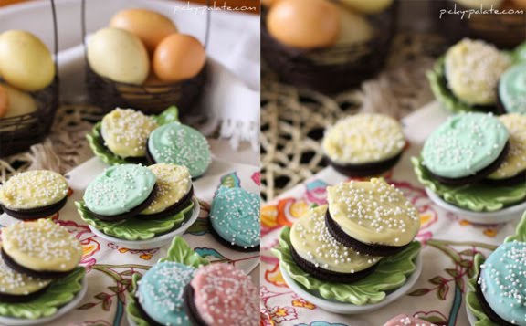 I found these cute Easter Oreos by stumbling across a fun baking blog called Picky Palate. I was looking for another way to use up some of my candy melts and I think these will pair well with the easter egg cupcake balls I plan on making for part two…stay tuned.