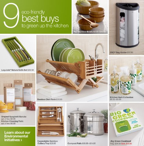 >Happy Earth Day… Sarah @ simplysocialbloggreen, kitchenLeave a comment > Looking for ways to green your kitchen this spring? This Earth Day email from Crate and Barrel offers a series of great tools to do just that! Flair Bamboo Bowls Oxo Bag HolderLaguiole ® Natura Knife Set Bamboo Dish Rack Kitchen Herb Counter SprayGoodbye detergent! ® Kitchen Cleaning Pad/Original Spaghetti Scrubs Expandable Bamboo Cutlery TrayCompost Pails“Big Green Cookbook” Share this:Tweet Click to email a link to a friend (Opens in new window) Email Like Loading... Related