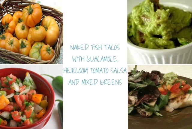 What do you do with a plethora of gigantic heirloom tomatoes? Make salsa of course! My dad picked up some wonderful tomatoes from a road-side stand this weekend and rather than let them go to waste, I thought I would try my Uncle Jim’s salsa recipe. I started with the salsa, a quick one-avocado guacamole and paired them with my fish taco recipe and voila! instant mexican fiesta for one.