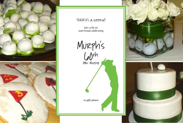 Last month we celebrated my dad’s 60th birthday with a golf-themed surprise party. After a long and hot day of golf (how appropriate), Dad came home to a house full of friends and family all there to celebrate 60 great years. From invites to desserts and decorations, my mom, sister and I really took the theme to the extreme. Take a look below. I highly recommend this theme for your next party if you have a golfer in the family!