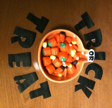 I’ve been bitten by the Halloween bug. For about a month now I’ve been feeding my own cravings and forcing others to join my addiction providing sweet treats to my co-workers via my candy dish. Today, I decided the lonely pumpkin dish was not cutting it. Maybe I’ve been reading to much Martha, or maybe I’m just always looking for a project, but this took no time at all. So join me in forcing co-workers to chat with you when they stop by for some goodies and let’s all keep Dentists employed this holiday season.
