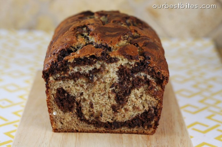 I like to think I make a pretty decent banana bread. (If I do say so myself…which I’m allowed to do because I’m the only one writing this blog) With a co-worker requesting something with chocolate for her birthday treat and bananas overloading my freezer door, I went in search for a recipe that could combine the two. I should have known that the folks at Our Best Bites (be sure to check out their new blog design!) would come through yet again and offer a delicious new recipe for me to experiment with combining, you guessed it, banana bread and chocolate.