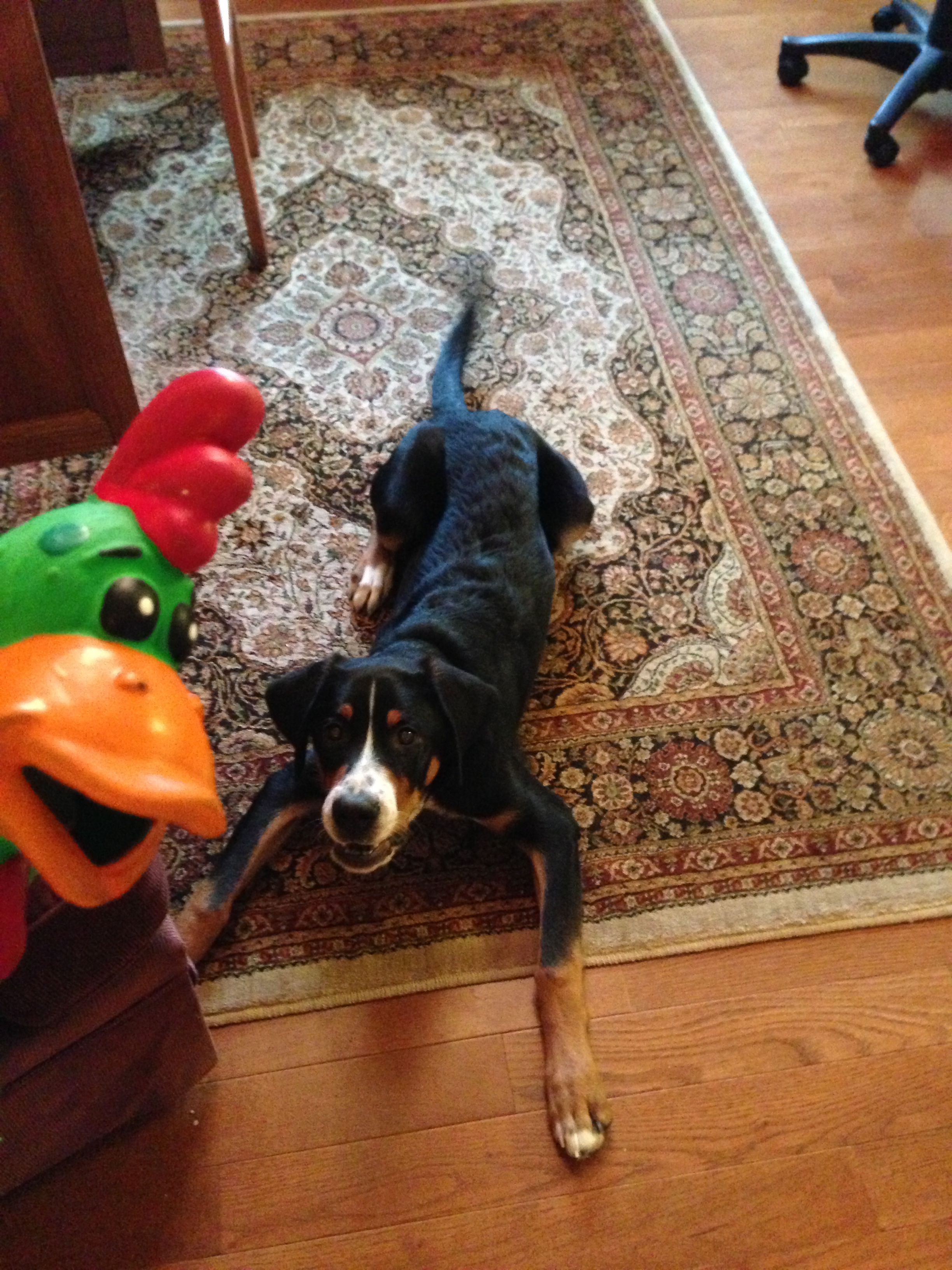 On January 9th, my rapidly-growing swissy, Finn reached his 6-month mark. For those of you unfamiliar with the Greater Swiss Mountain dog, the breed tends to gain around 10 pounds per month over their first year. They are big dogs. They also are known for their love for weight-pulling. And while I hope to increase my weight-lifting in 2013, I’ve accepted the fact that my pup will be stronger than me in no time.