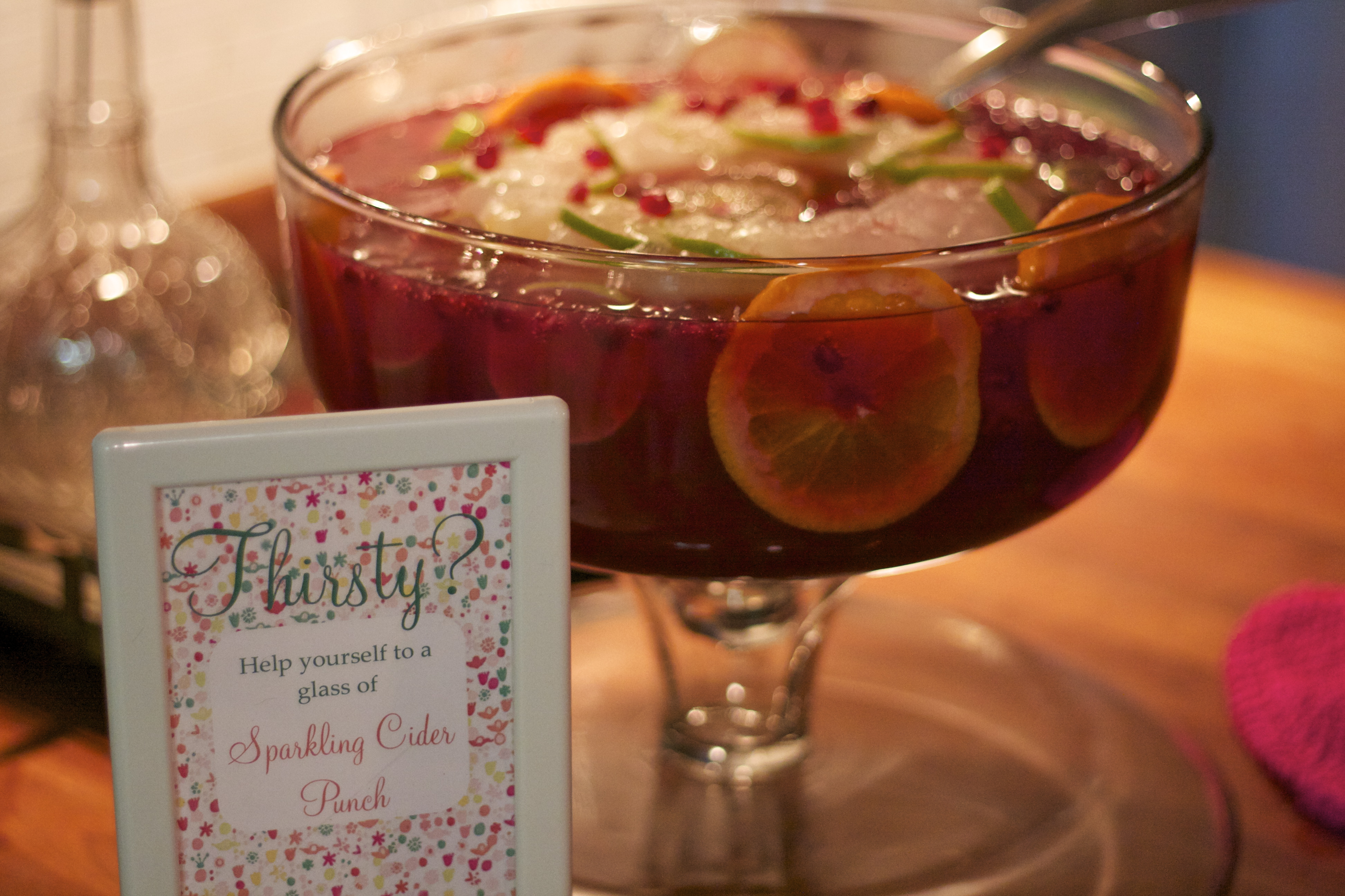 My co-host made a pomegranate punch that was light and refreshing. We served it with ginger ale and just had a bottle of Prosecco on hand for those who wanted a little kick to their punch. I’m not sure the exact recipe she used but I found a similar one from Food and Wine here.