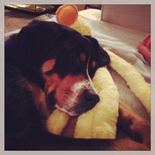 Ok don’t panic, Finn. Let’s evaluate the situation. She’s not going to that ‘Jim’ she talks about because she’s clearly not wearing stretchy pants. Is it time to eat again? Darn, she’s just refilling that round thing that holds my water. Oh yes! Here comes that soft and fluffy pad I sleep on in my crate. It’s so cozy I could just lay down right…no Finn! Focus! Oh look! Toys! She’s throwing all of my favorite toys in the kitchen. Not anorexic big bird. I love anorexic big bird!