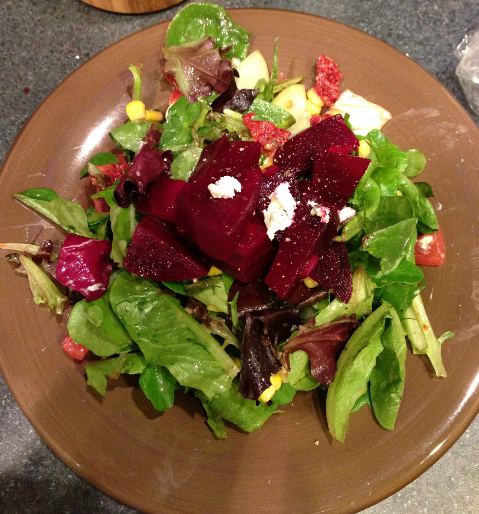I decided to start on the rice while I waited for my fresh fish delivery and make a big salad to go with it. For a first-time fried rice maker, the recipe was easy to follow and really fast. Point Bon Appetit.