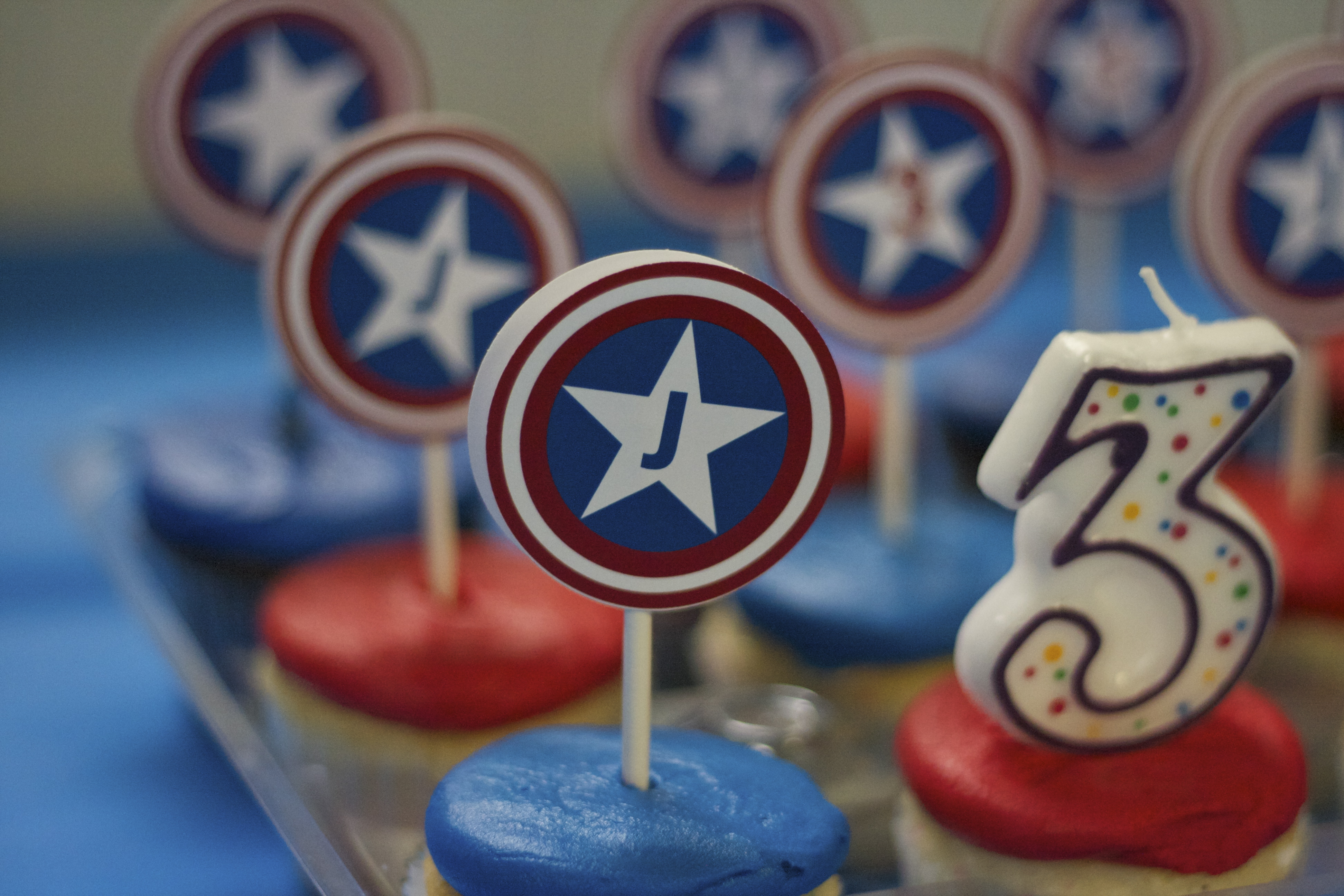 Add some simple captain-themed cup cake toppers, some thank you tags and you have a quick and easy Captain America Party without a lot of fuss.IMG_3019