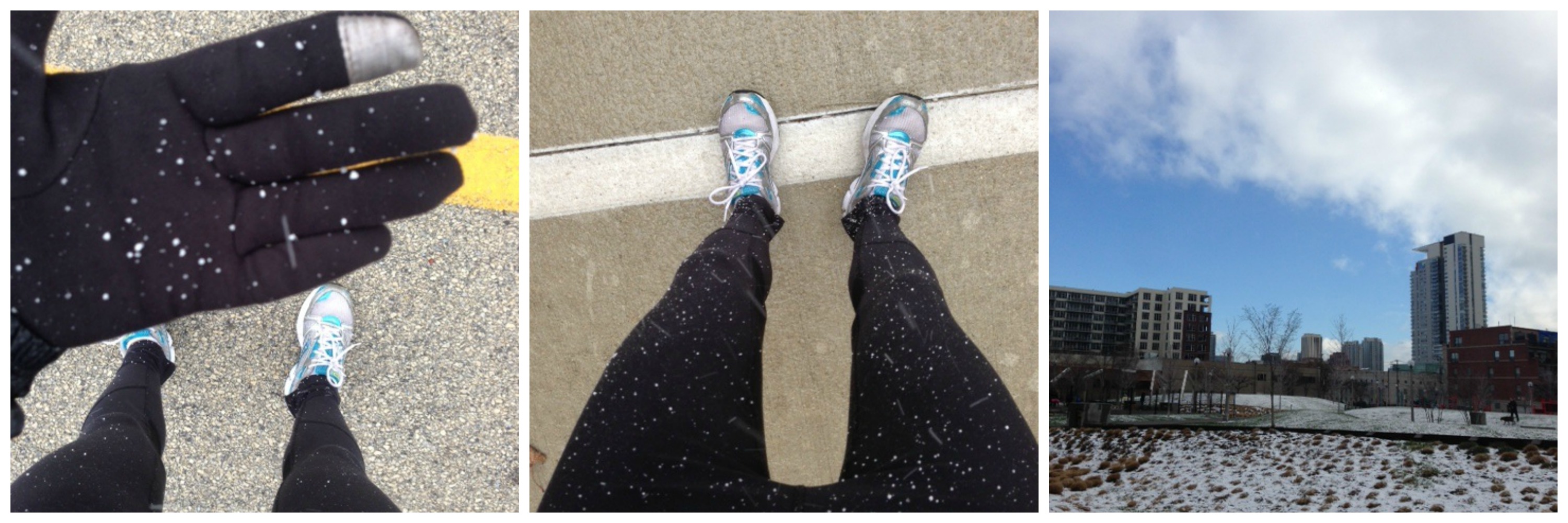 Then it started. Snow. And then in worsened. Heavier snow. No wait, that’s more like sleet. Oh hail. That’s a lot of hail. And I’m 5+ miles from home with no other option than to just put my head down and deal with it. And I wasn’t the only one. Each pack of runners I passed shared a head shake and a look of bewilderment with me as we scurried through the unseasonable weather like ants to a picnic. Only this was no picnic, folks. It was miserable. And because I was running solo my only chance at misery loves company was to take incessant amounts of iPhone photos and video to share with my family who was currently enjoying a warm 75 degree Saturday just 3 hours south of me. And so I did.