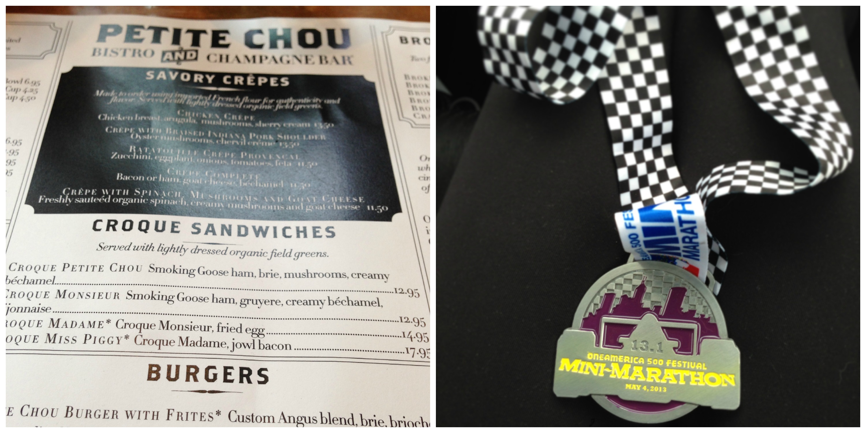 I’m a wee bit obsessed with a little french bistro in Indy called Petite Chou. My friends introduced me when I first visited and we typically make a stop each time I’m in town. My aunt also lives in Indy so it’s not unusual for us to frequent it on family visits as well. So it’s no surprise that come Sunday morning we stopped in for an early breakfast before heading back to the city, medal in hand lap.
