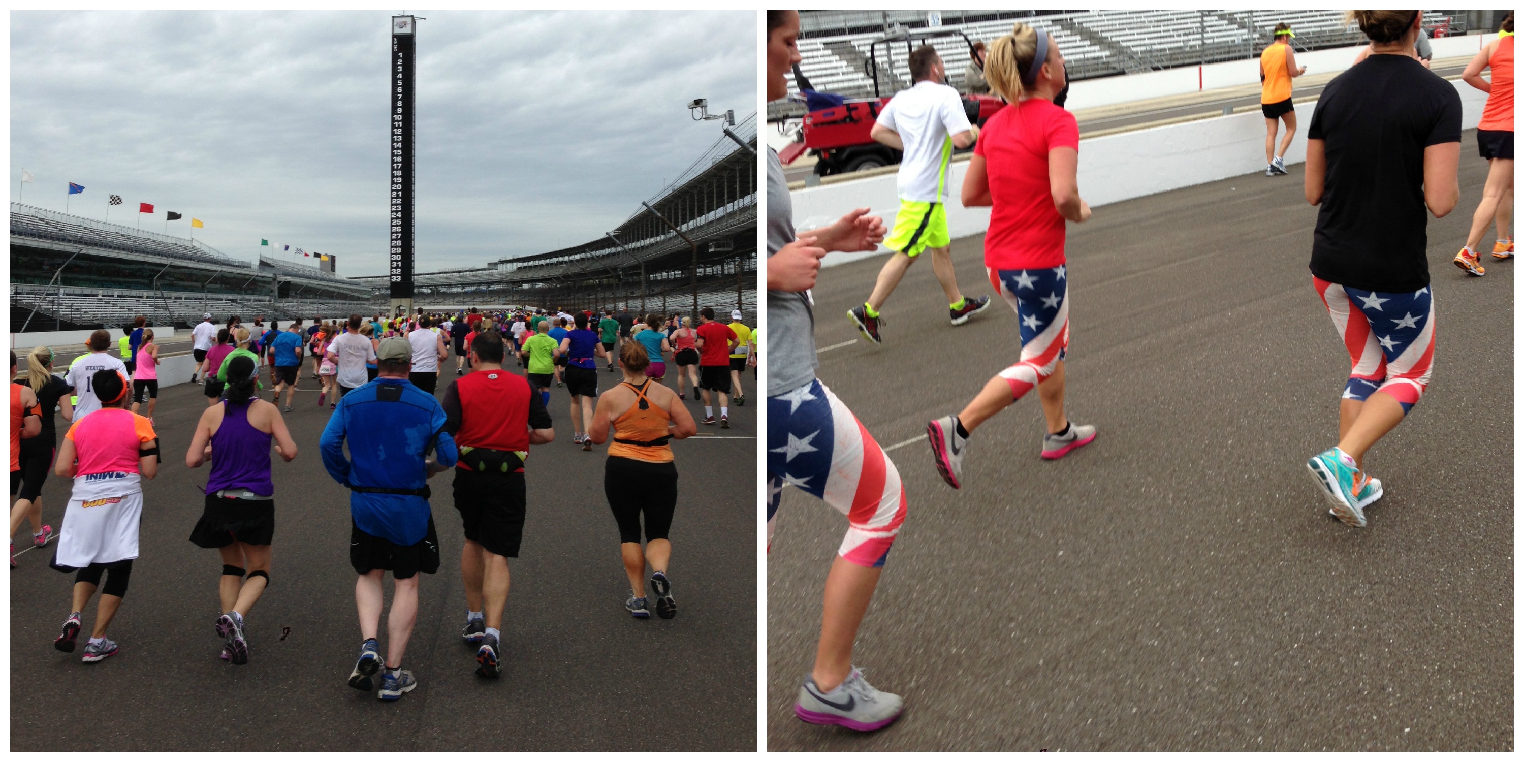 One cool feature of the mini marathon was that miles 6-8 were run on the Indianapolis motor speedway. And while I don’t know we set any course records compared to those Indy cars, it was pretty cool to take a lap on the track where the Indy 500 will run at the end of the month. You could smell the sweat patriotism in the air.