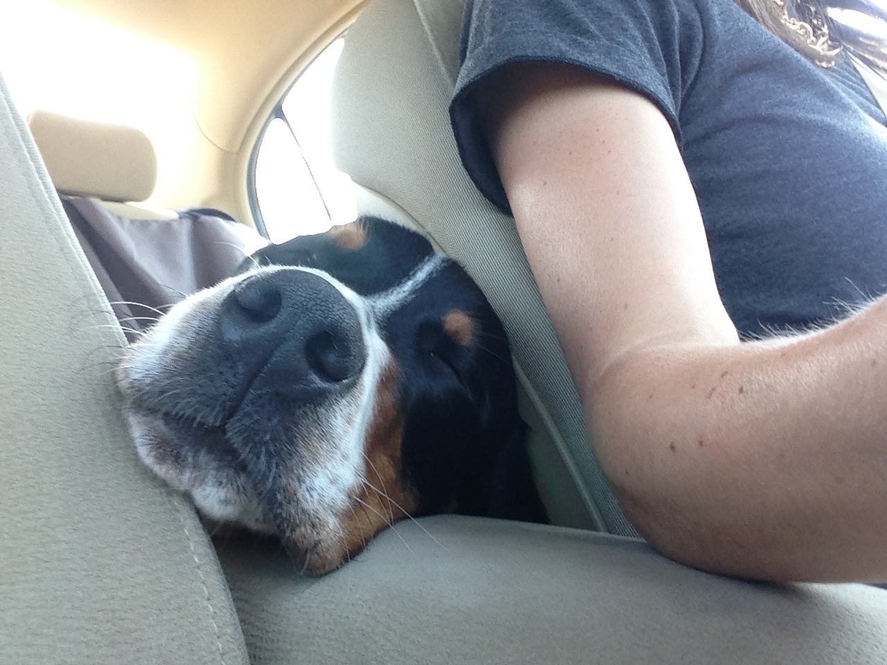 After a casual 4th of July in the city, I traveled down to Springfield on Friday to spend some time with family and celebrate one of many July birthdays. Per usual, Finn slept the entire way. Adjusting positions from this: