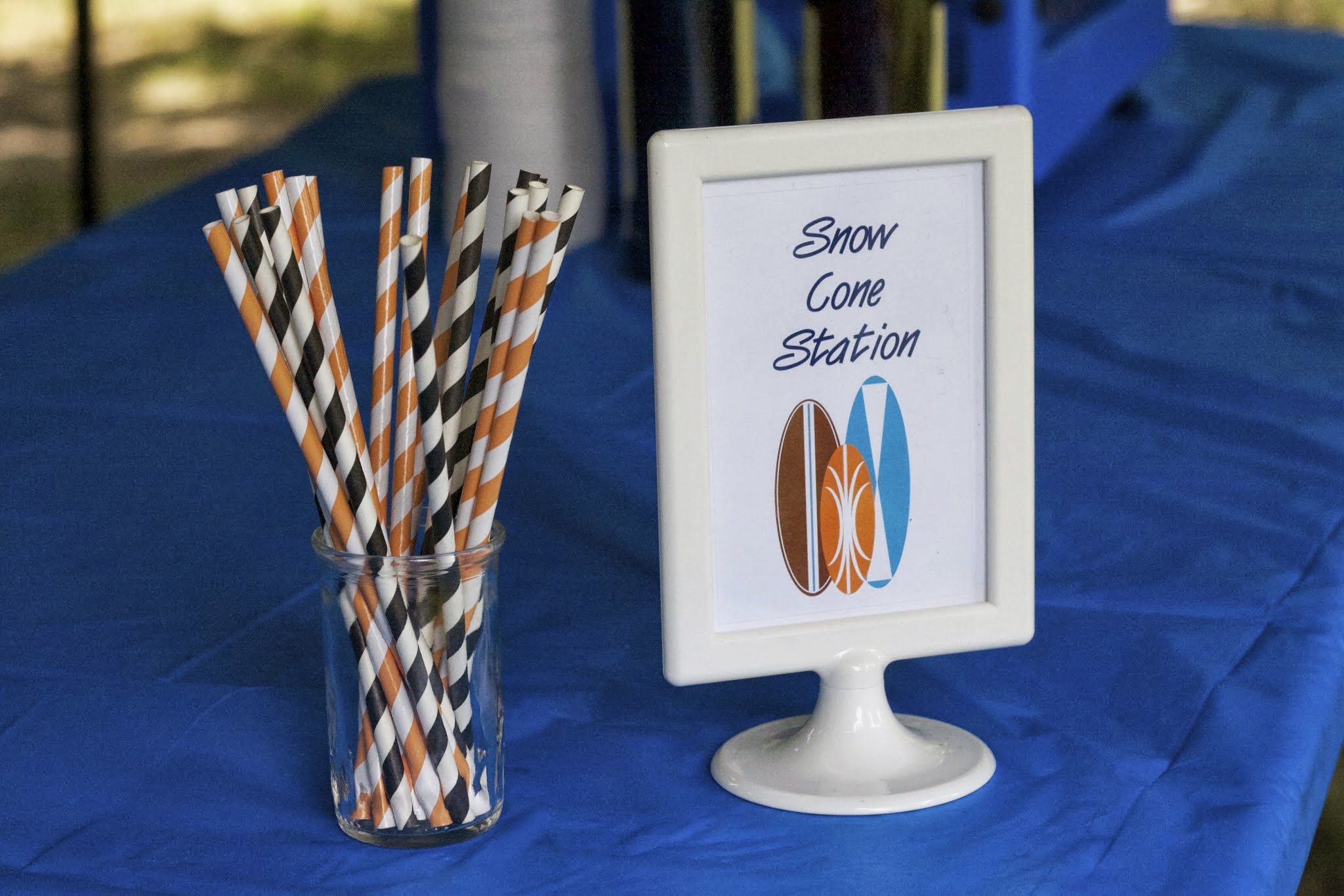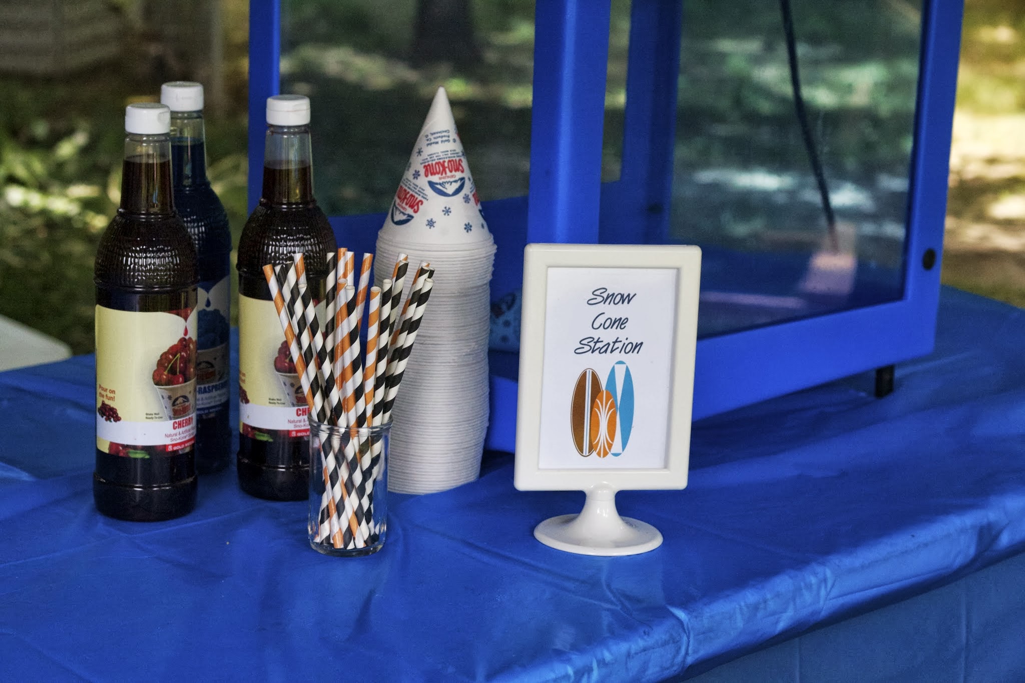 Then it was back home to prep the backyard for the Water World trilogy that would be our afternoon. The snow cone station was set up.