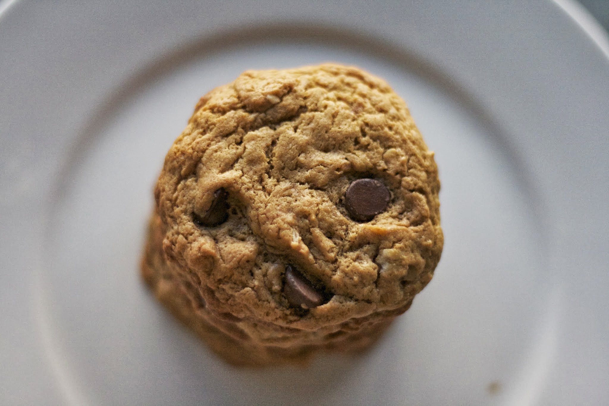 This time I was a bit more bright-eyed (remember I napped) and followed the recipe accurately. Mix brown sugar, vanilla and peanut butter until creamy. Add eggs one at a time. In a separate bowl mix baking soda and oats. Mix dry ingredients into wet until combined. Fold in chocolate chips. Using a cookie scoop, spoon 1-2 inch rounds onto non-stick baking mat. Bake for 9-12 minutes (11 for my oven) at 350. Let cool on pan for 2 minutes before moving to cooling rack.