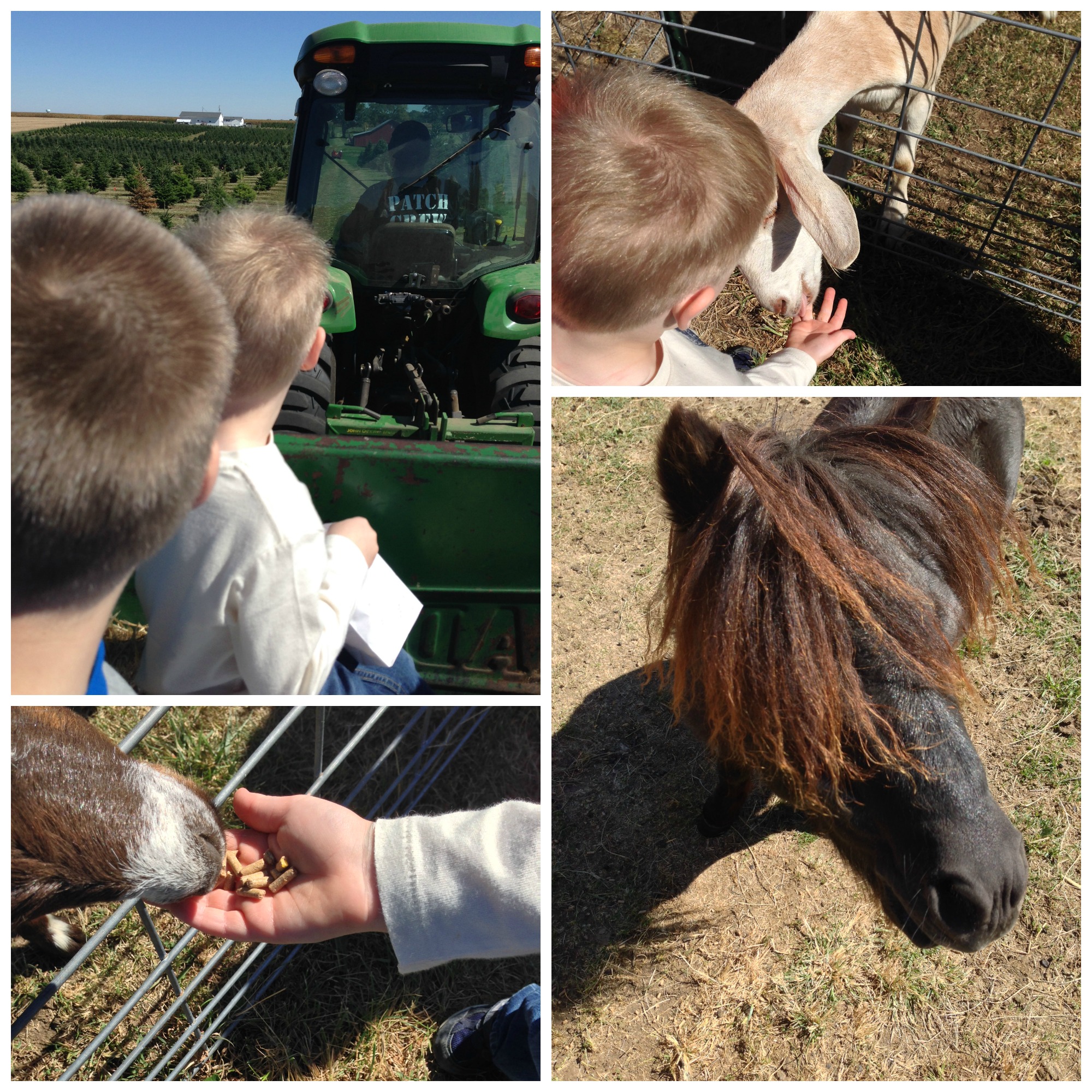 We took a tractor ride down to a small petting zoo where we met several goats, a donkey and a miniature horse I will call Beyoncé. No, I’m not saying Beyoncé looks like a horse. It’s just the way in which that little diva of a horse shook her hair that reminded me of Queen B.