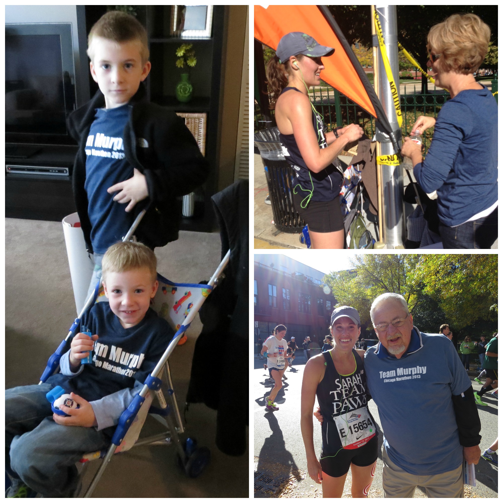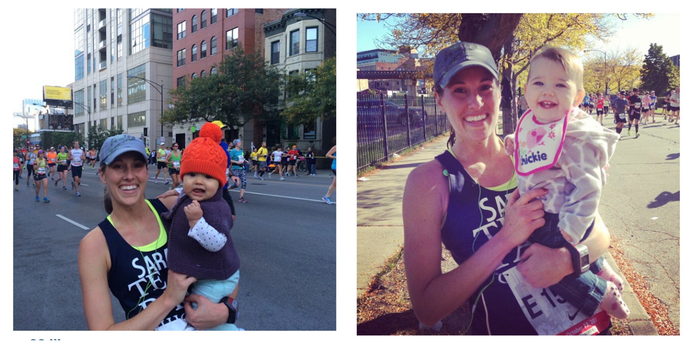 Miles 14-16 were nothing but happy because I had these bright smiling (and model-ready) faces to feed me ibuprofen and hug me. Running through charity village and my friends Trista, Paul and their cute baby girl also made for happy moments as we entered into the second half of the race.