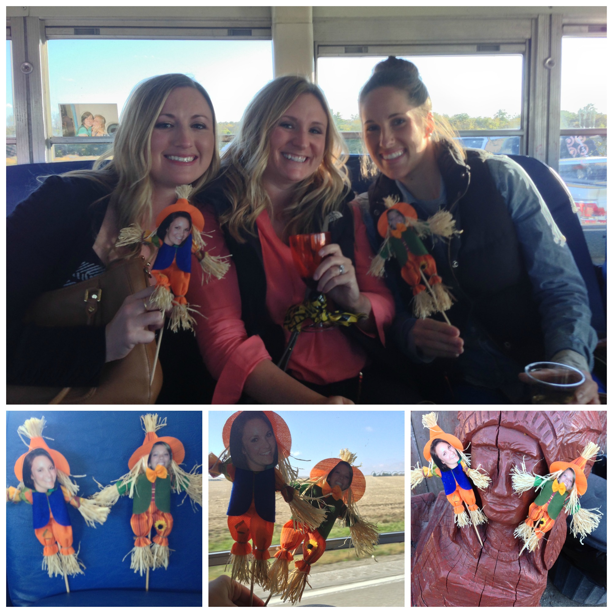 I did a little morning crafting in an effort to represent a few friends who couldn’t make the party. It’s sort of a tradition we have that when someone can’t make it we put them on a stick. And by we I mean I. Only for big occasions of course. And since our pseudo-theme for this thing was harvest party, I figured a pair of scarecrows were as good a representation as any. And let me tell you, those scarecrow girls had fun on Saturday.