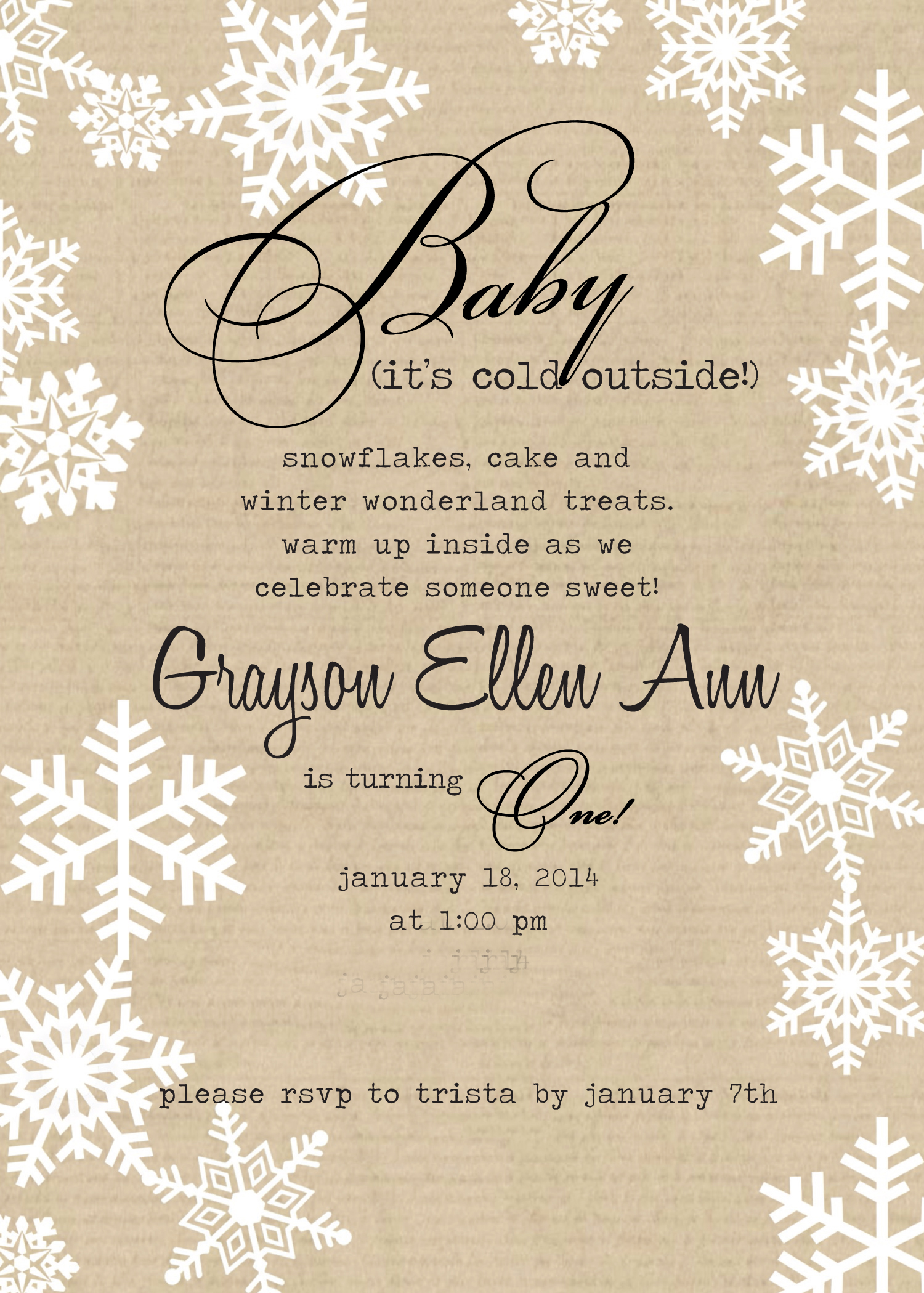 If you were reading along last year, we threw a series of baby showers for an influx of little girls coming our way throughout the winter season. Four to be exact. It’s hard to believe they are all turning one already. If you mommas are reading this, you might want to consider another theme for year two as each party has been accompanied by LOTS of snowflakes, both inside and out.