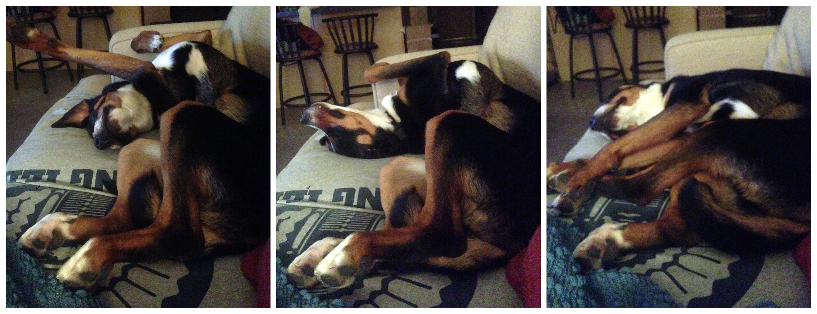 4. This post for documenting other dogs that sleep in horribly awkward positions like mine does. It’s currently tied with this video that shows just how incredibly tough dogs are when they are faced with a cat.