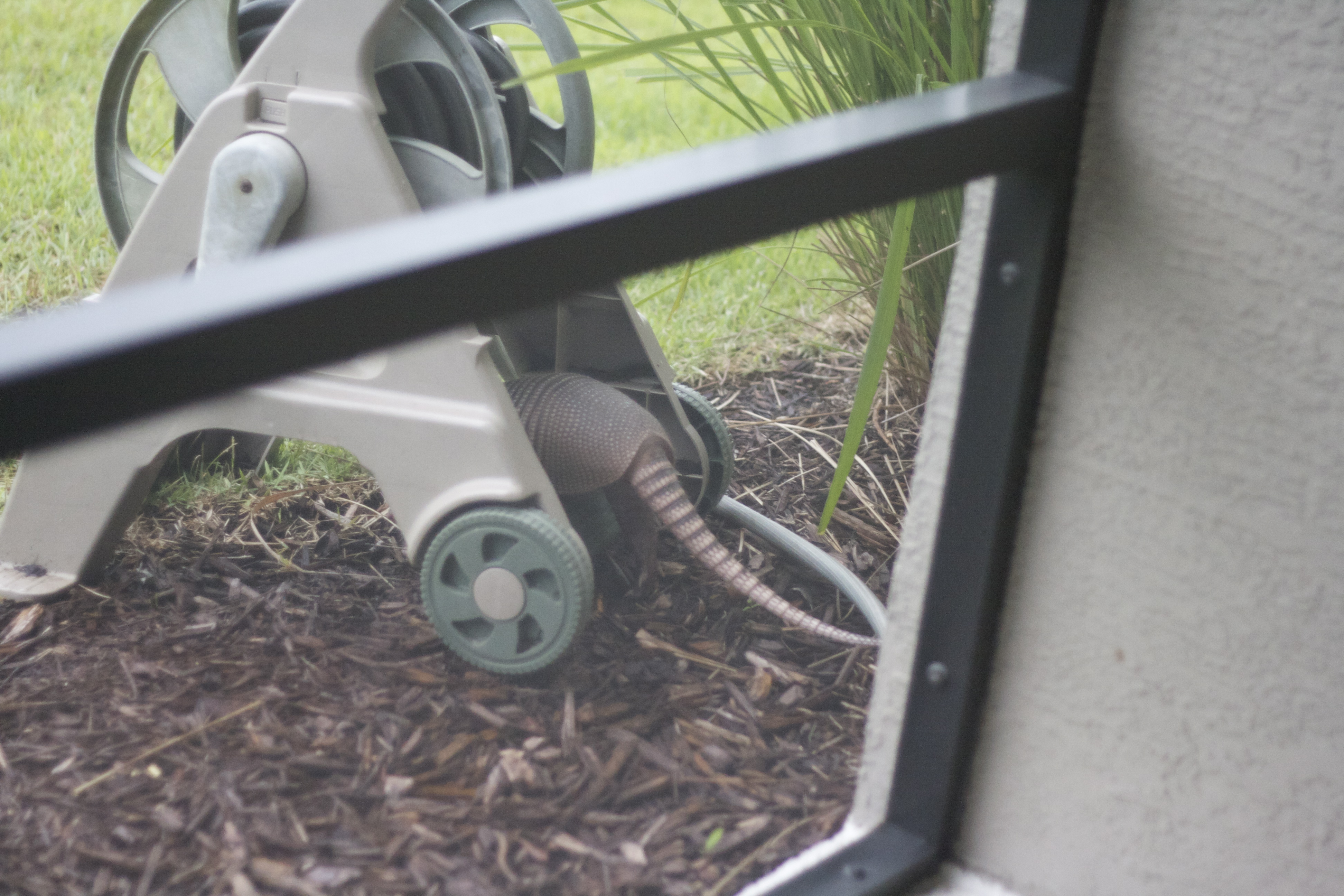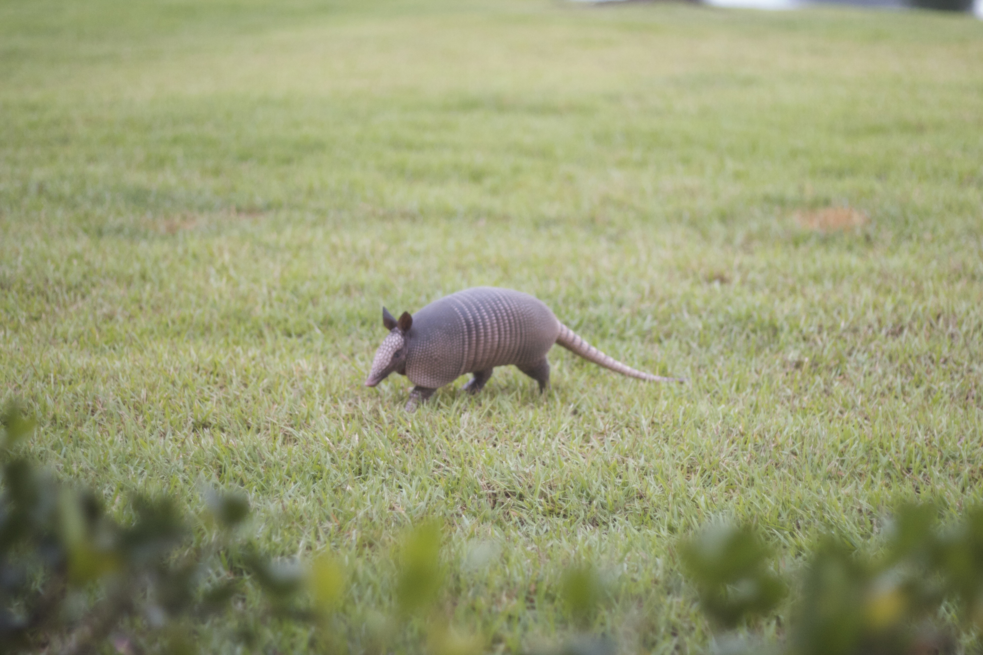Arnold came over for a visit this morning. He spent a little time digging around our lanai and then headed East in search of more insects. Later on a walk with Finn, he showcased his poor eyesight by crossing right into our path. Fortunately for Arnold, Finn destroyed his armadillo chew toy around 7 months of age so he wasn’t interested in much other than sniffing Arnie back towards the bushes.