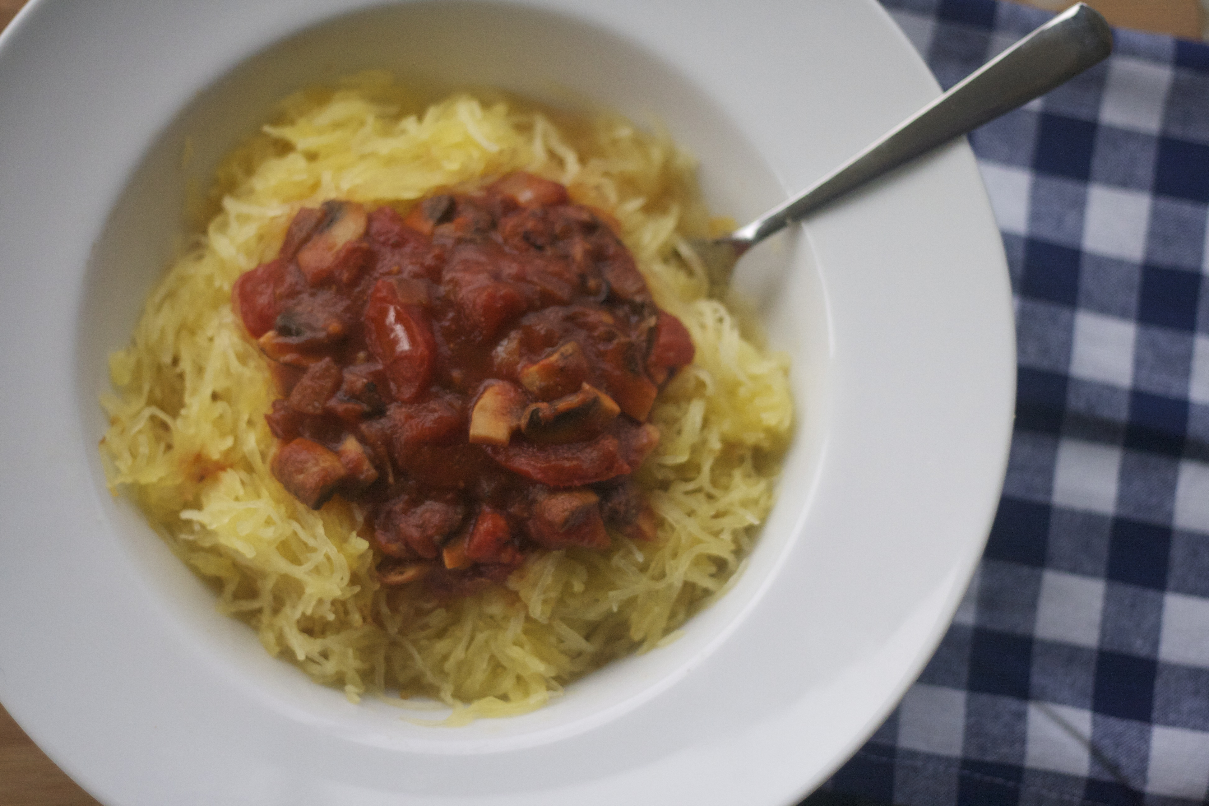 Since I’m all about doing things fall even though it’s still 96 degrees outside this year, I decided to roast up a spaghetti squash the other night for dinner. I know what you’re thinking, no way is that going to take the place of the traditional pasta I know and love. And you would be right. The flavor is sweeter, the texture a little more, dare I say it, moist, and it’s a vegetable for goodness sake.