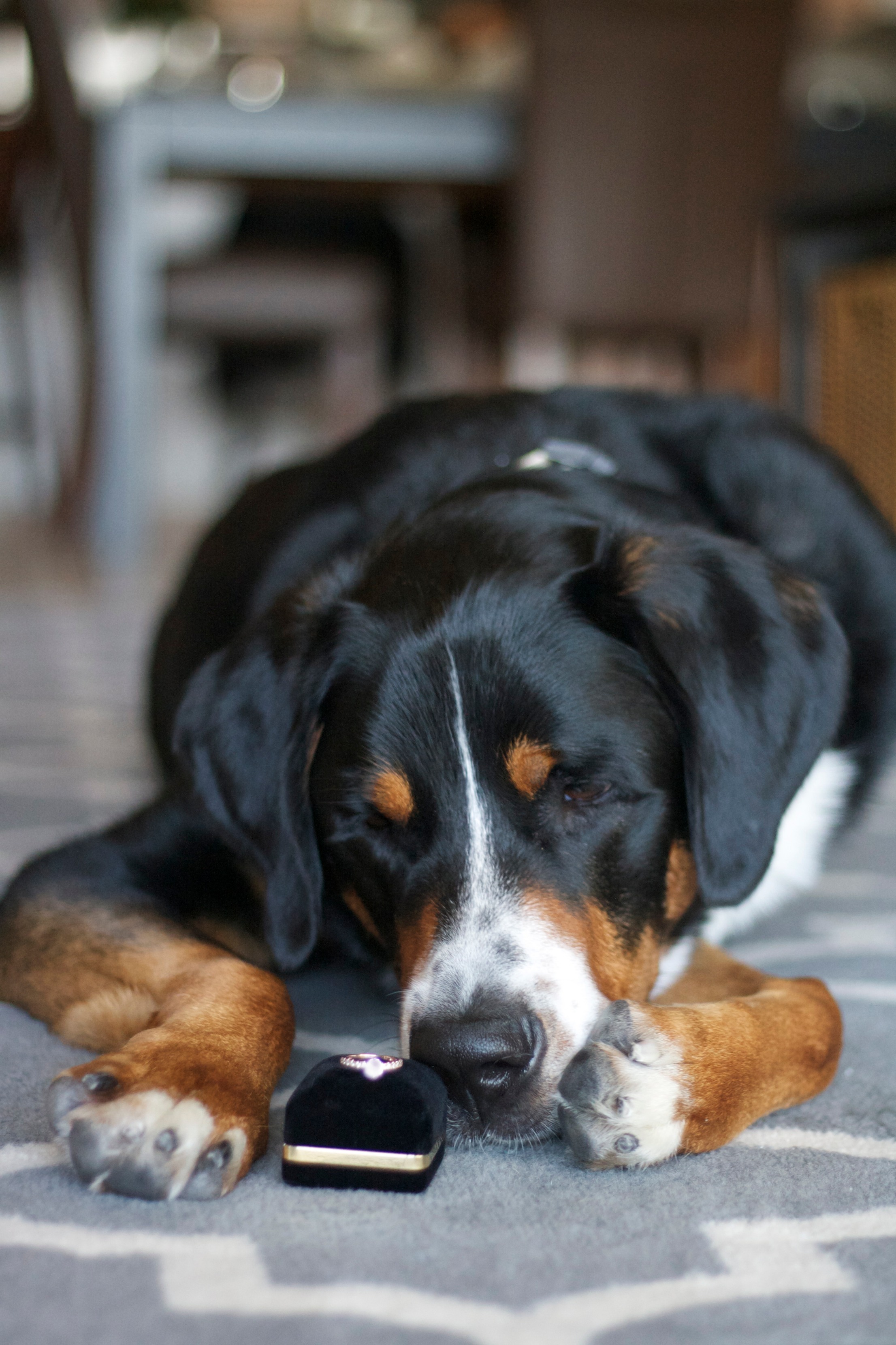 Making it official Sarah @ simplysocialblogfamily, observations, photography, puppies, weddingsengagement, engagement announcement dog, engagement ring, finn, greater swiss, greater swiss mountain dog, swissy2 Comments Just shy of five years and one cross-country move later, Finn is no longer an illegitimate child. We are over the moon, excited and blessed. Disclaimer: No engagement rings were ingested in the making of this announcement. Share this:Tweet Click to email a link to a friend (Opens in new window) Email Like Loading... Related