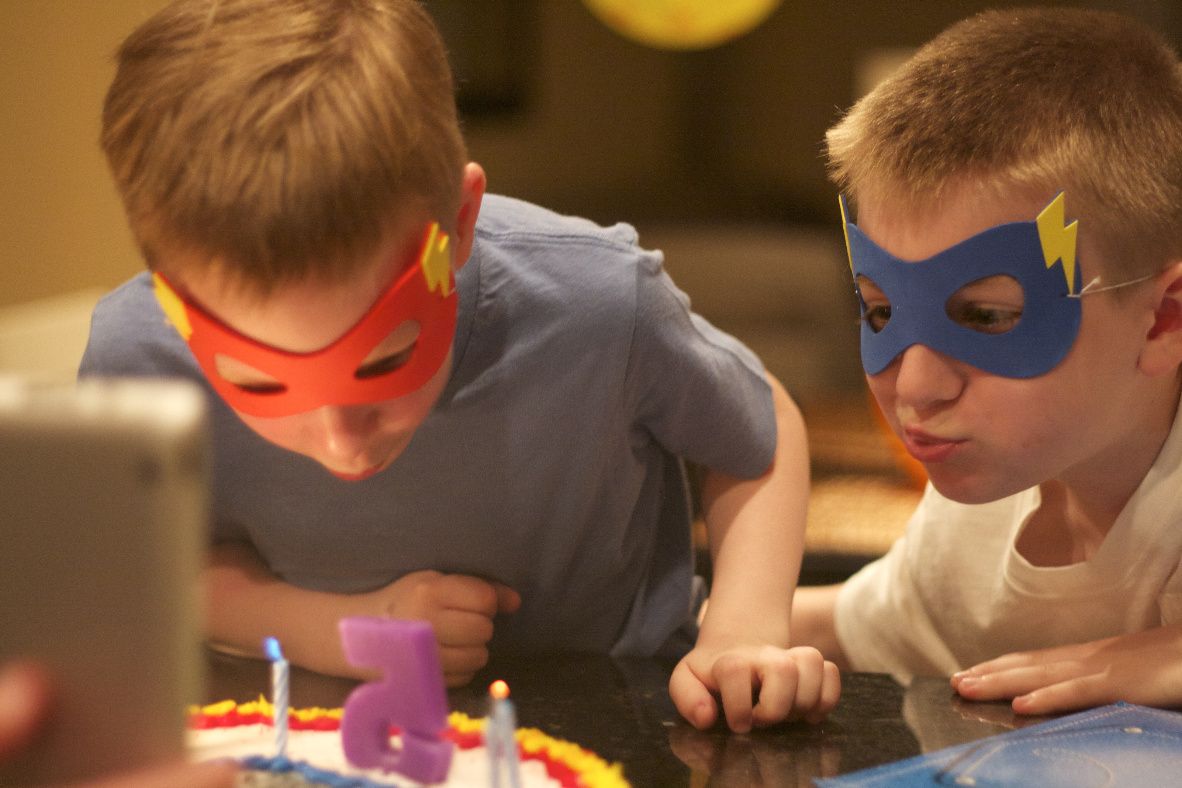 On Thursday, we celebrated Jake’s 5th birthday the only way Jake prefers to celebrate, with superhero masks and store-bought cookie cake.