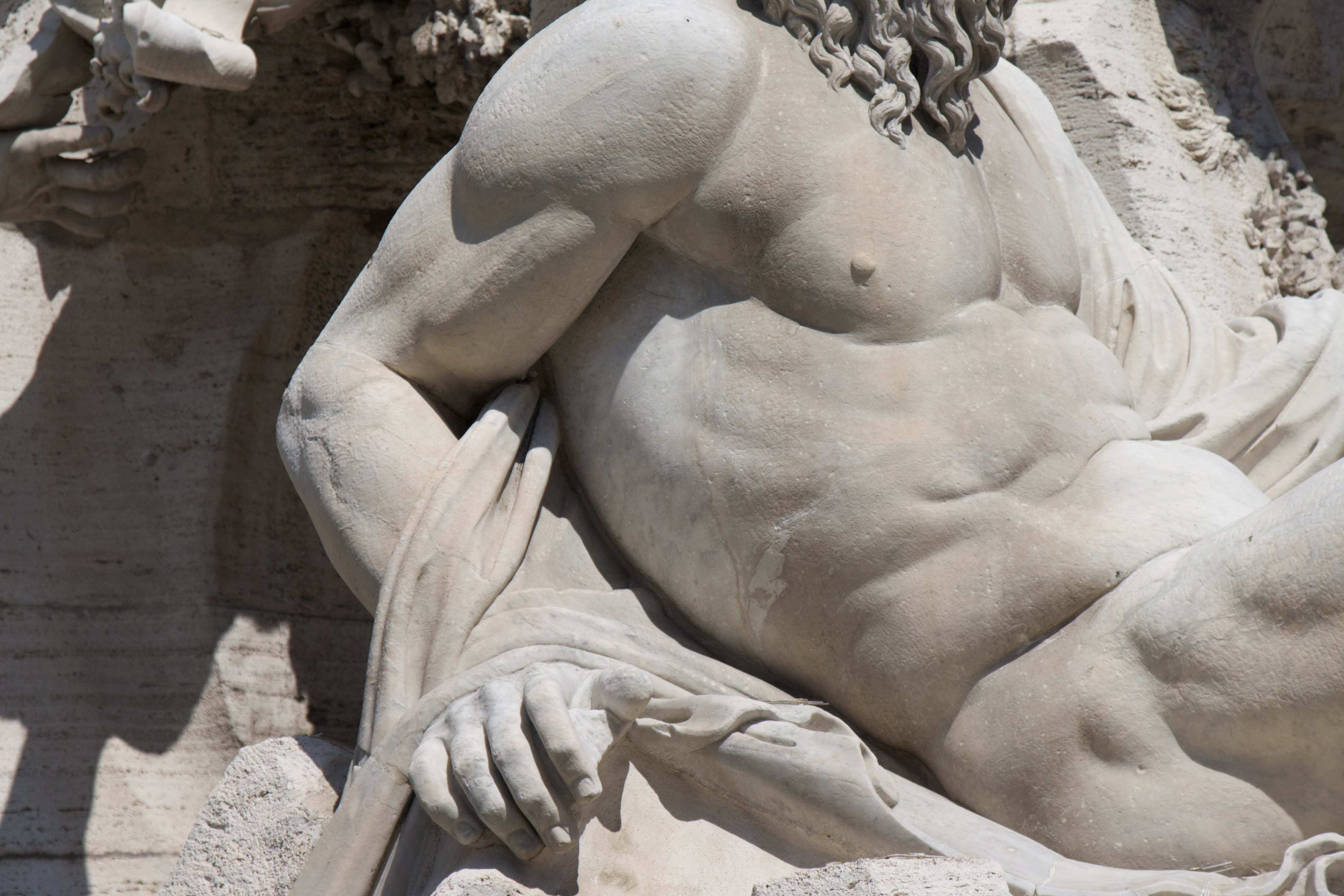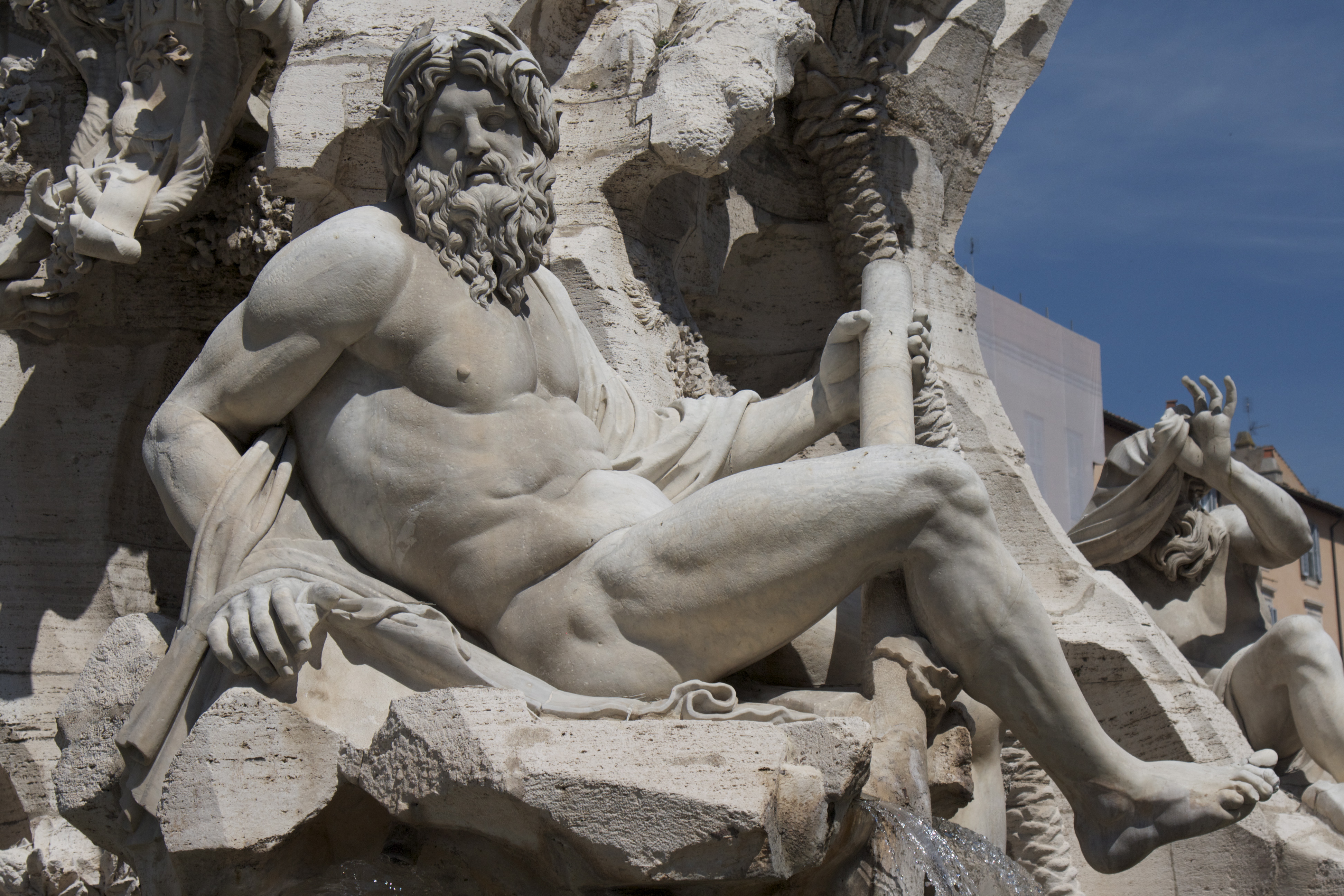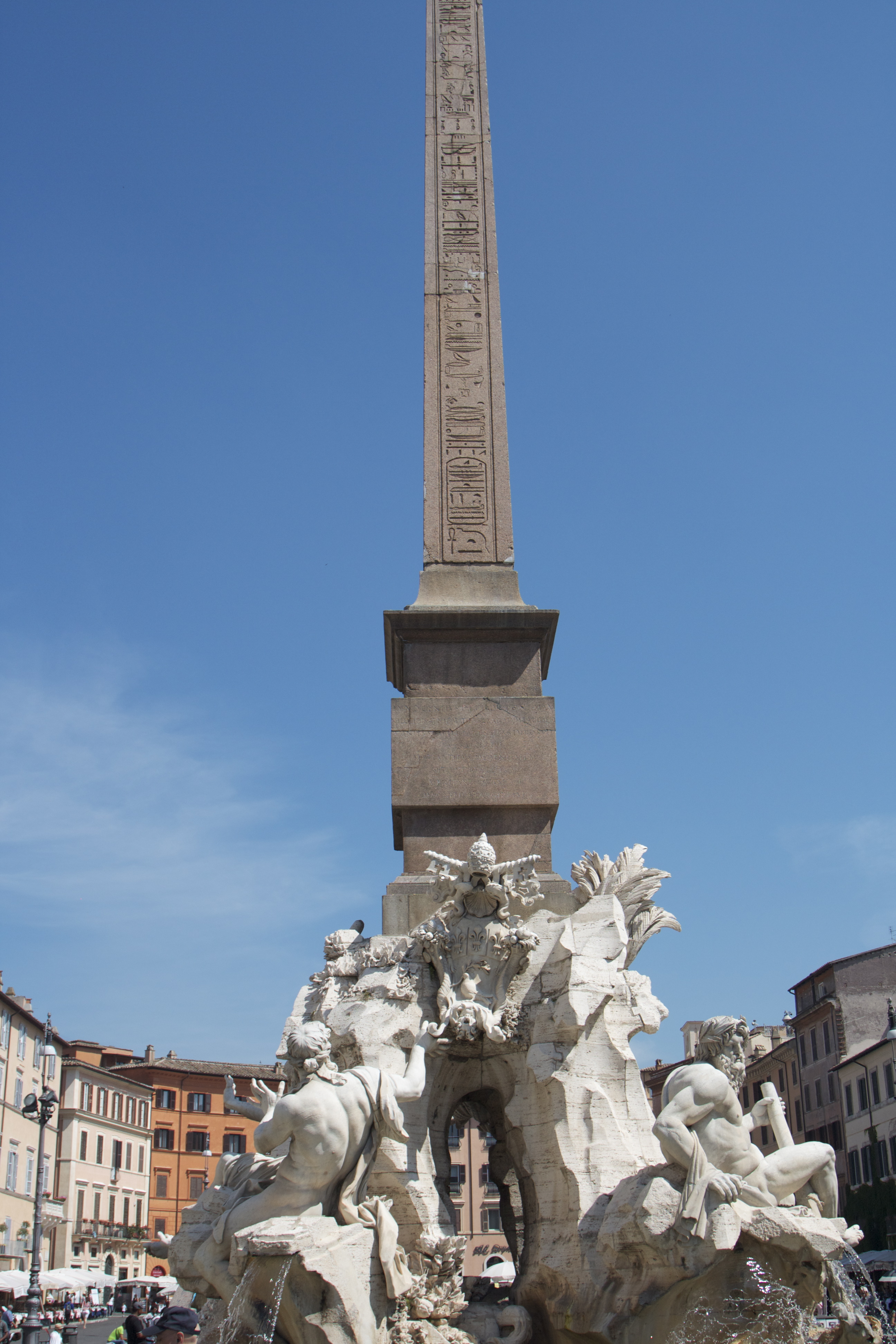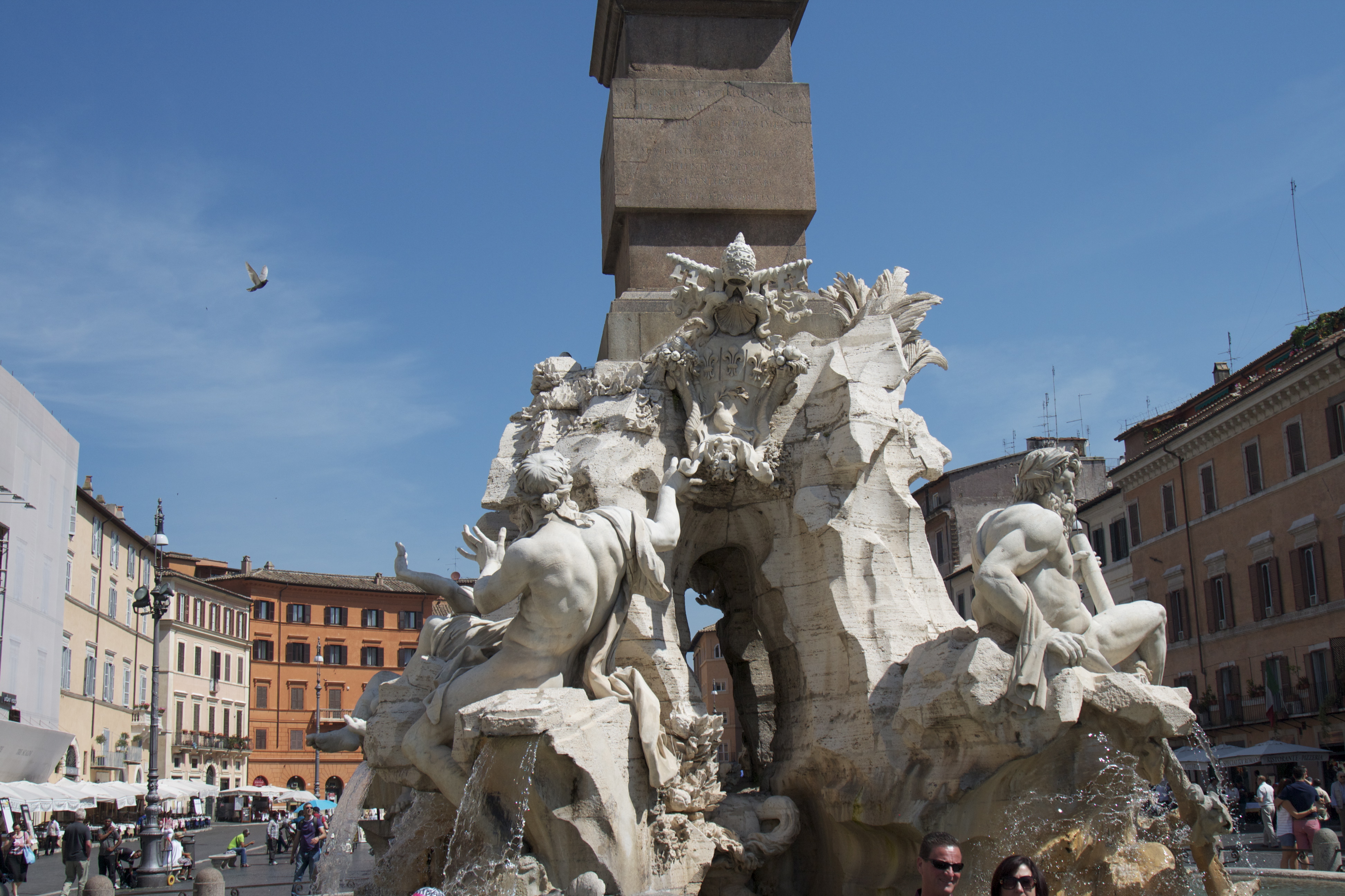 We were told that Vatican City was about 40 minutes from our hotel so we decided to make the most of a warm 85-90 degree day (all acclimated now that we live in Florida) and walk. We made our way down through Piazzo Novana to take another look at the Fontana dei Quattro Fiumi (fountain of four rivers) which was designed by Bernini, who studied under Michelangelo and was known for his attention to detail (i.e. Matt Zalewski biceps).