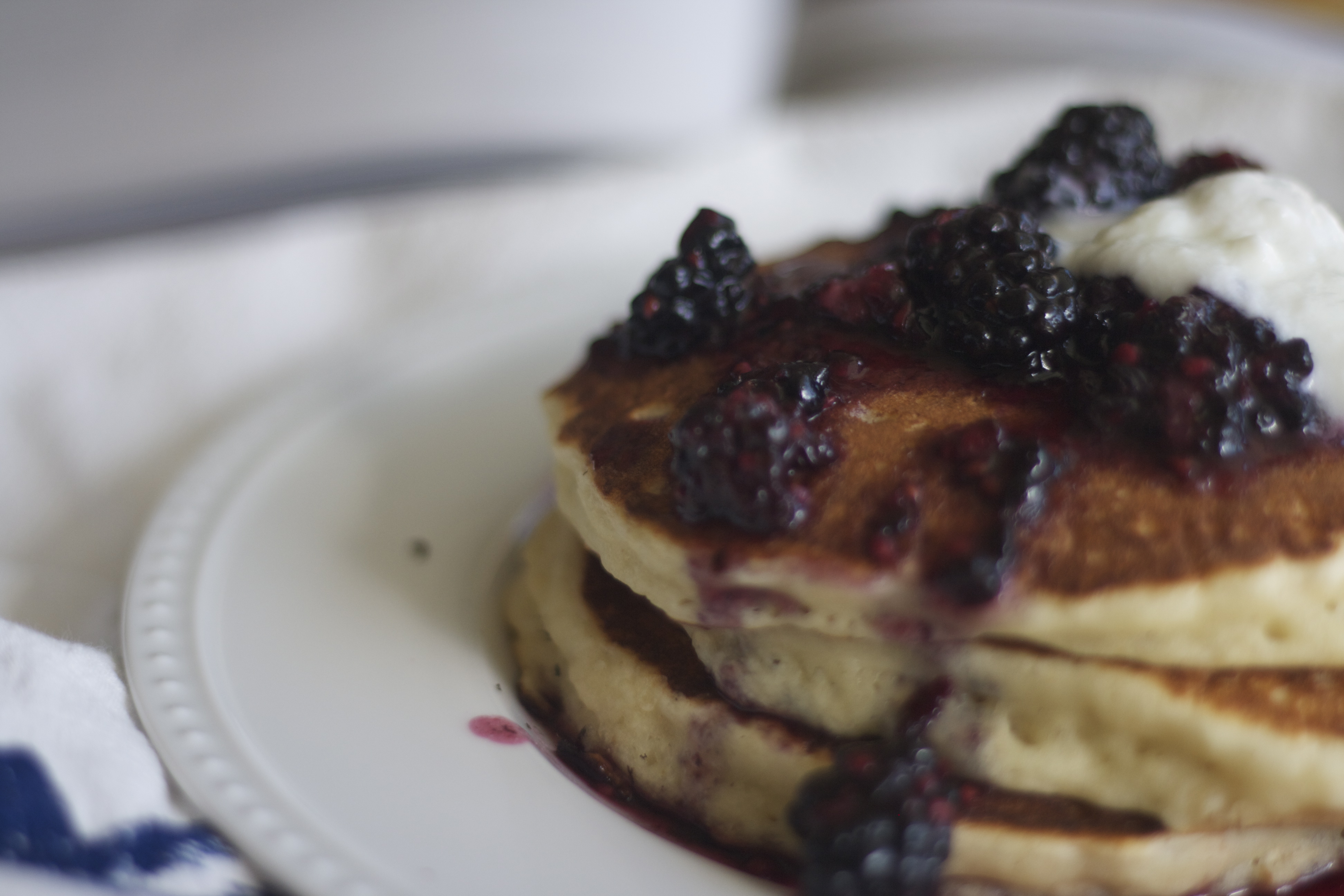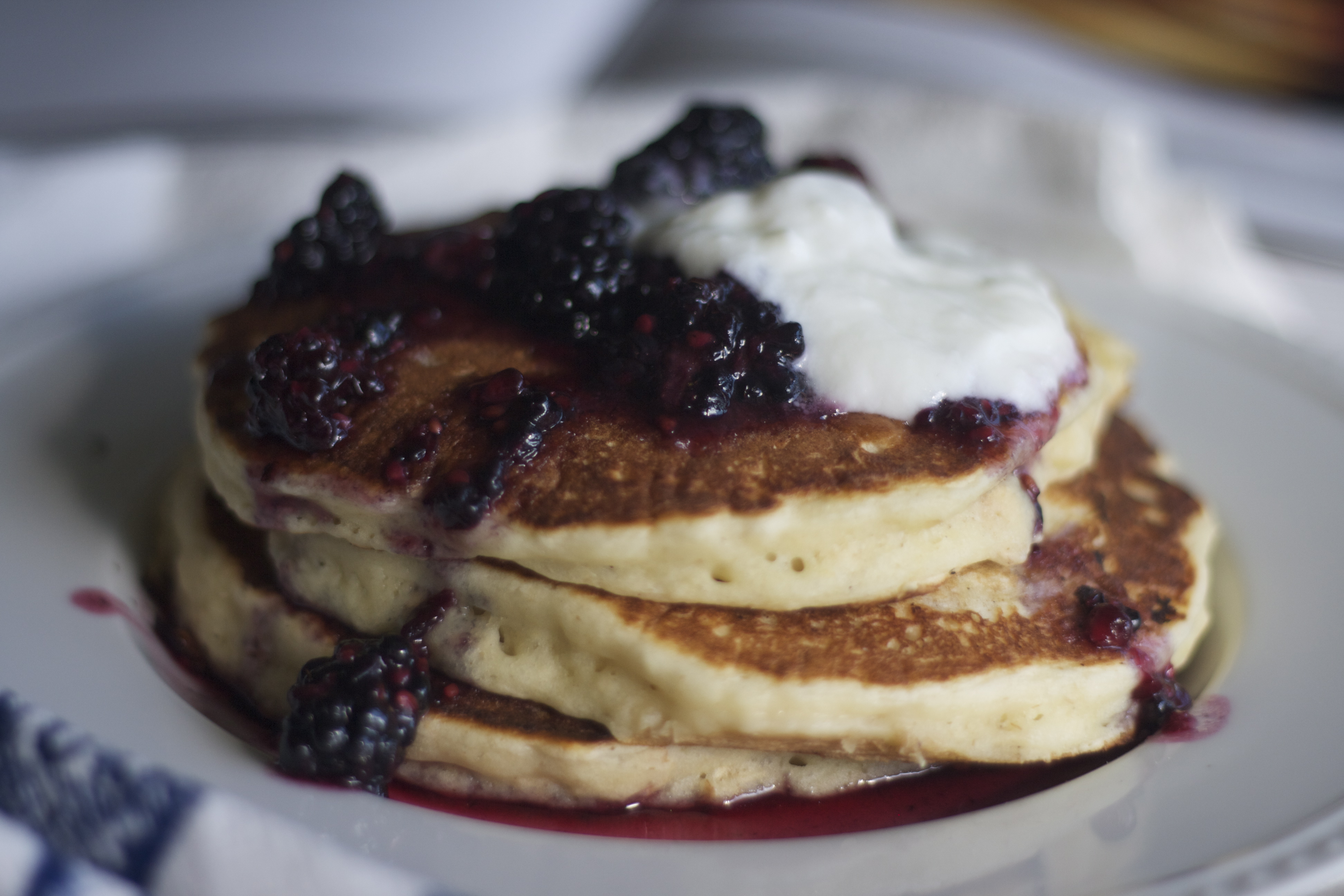 oatmeal yogurt pancakes with blackberry crush, newlywed cookbook, blackberry, breakfast, pancakes, yogurt, brunch, Oatmeal-Yogurt Pancakes