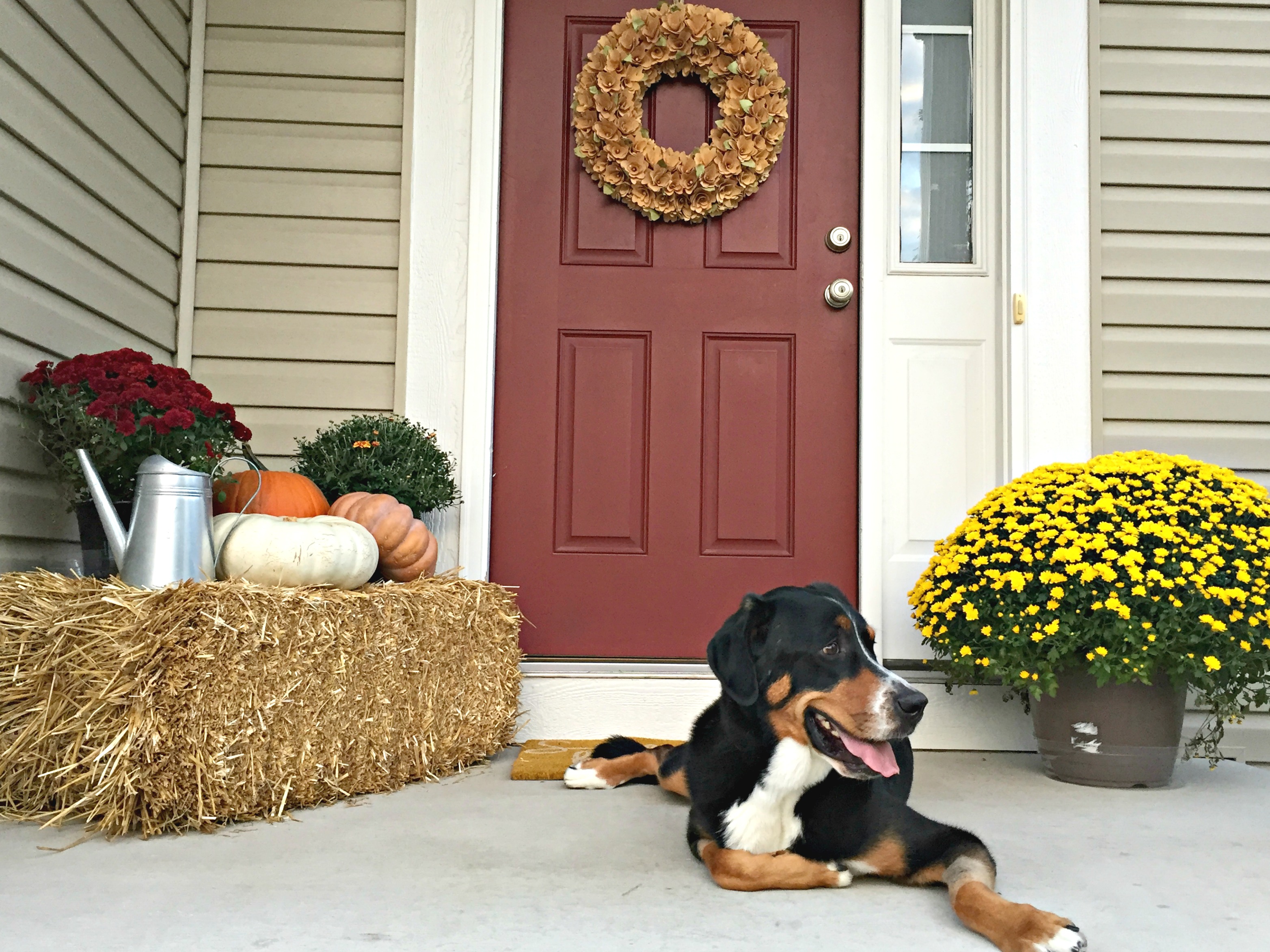 Bonus points if you have a dog that just so happens to perfectly match all things fall and loves the weather so much he happily sits on the front porch to feed your fall habit.